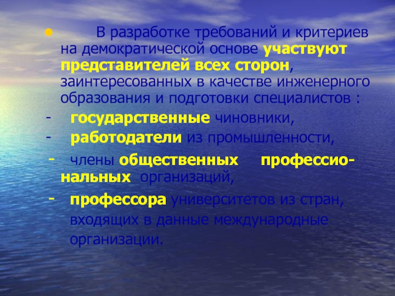 Слайд 35	    В разработке требований и критериев на демократической