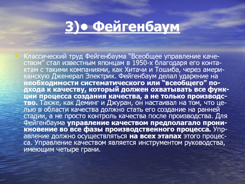 Классический труд Фейгенбаума “Всеобщее управление каче-ством” стал известным японцам в