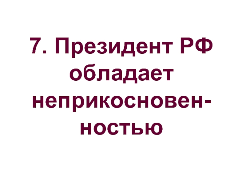 Слайд 167. Президент РФ обладает неприкосновен-ностью