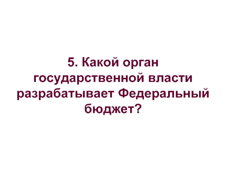 Слайд 845. Какой орган государственной власти разрабатывает Федеральный бюджет?