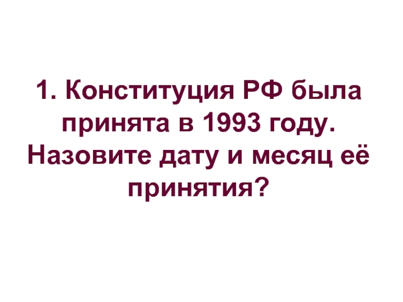 Слайд 401. Конституция РФ была принята в 1993 году. Назовите дату и