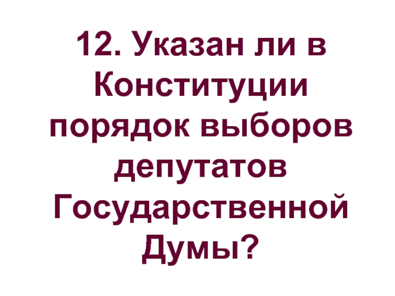 Слайд 3612. Указан ли в Конституции порядок выборов депутатов Государственной Думы?