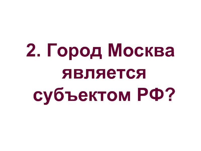 Слайд 262. Город Санкт-Петербург является субъектом РФ