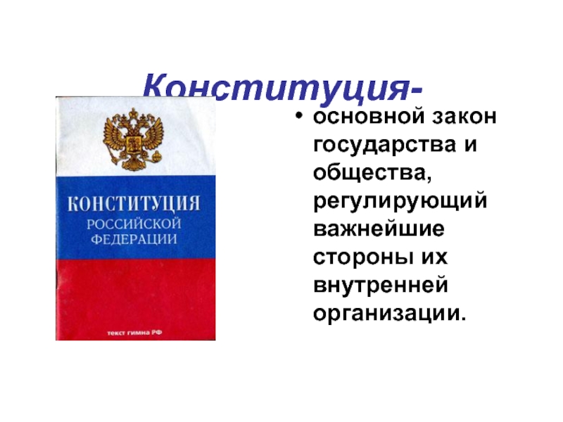 основной закон государства и общества, регулирующий важнейшие стороны их внутренней организации.