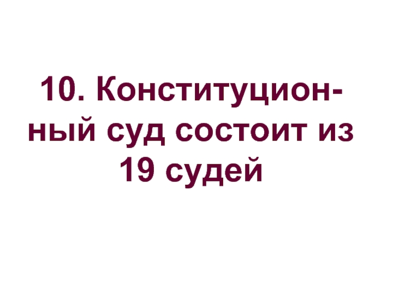 Слайд 1910. Конституцион-ный суд состоит из 19 судей