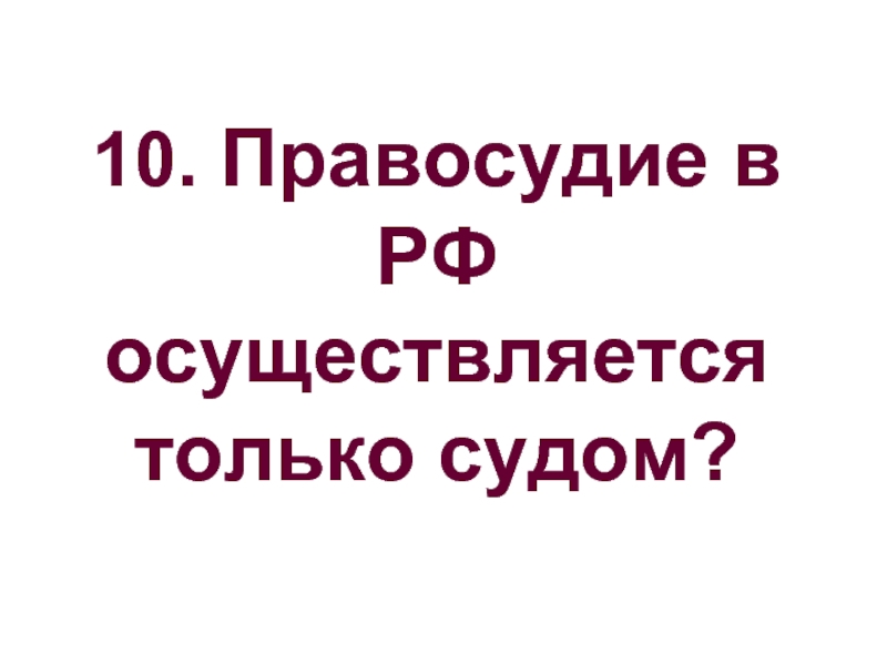 Слайд 3410. Правосудие в РФ осуществляется только судом?