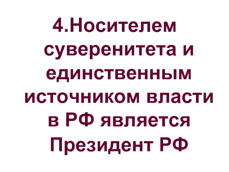 Слайд 134.Носителем суверенитета и единственным источником власти в РФ является