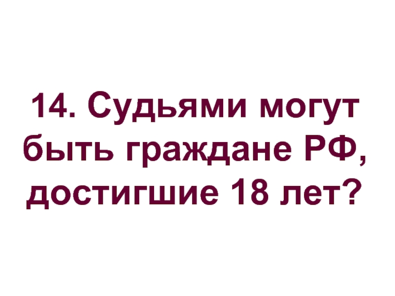 Слайд 2314. Судьями могут быть граждане РФ, достигшие 18 лет?