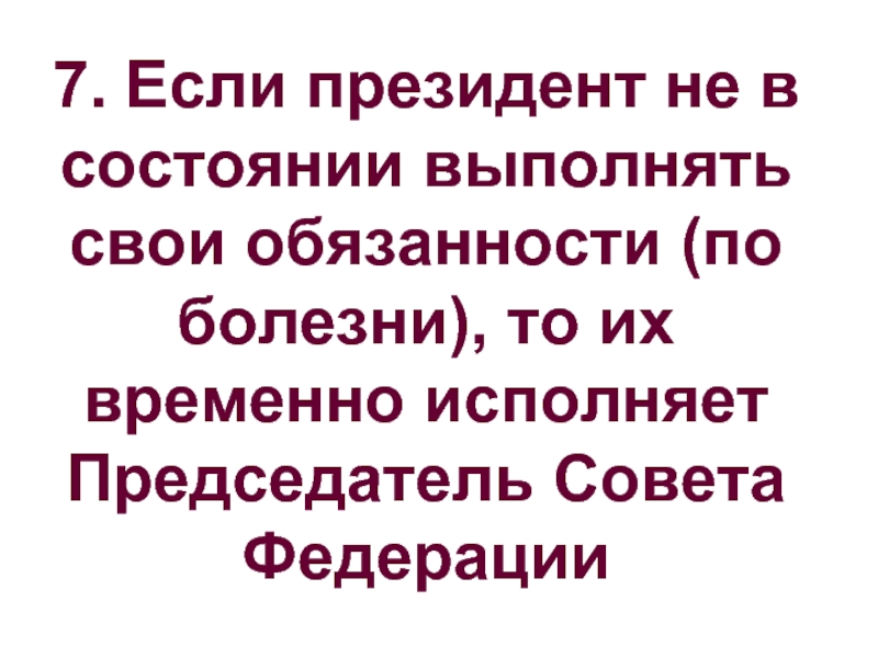 Слайд 317. Если президент не в состоянии выполнять свои обязанности (по болезни),