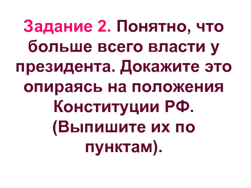 Слайд 51Задание 2. Понятно, что больше всего власти у президента. Докажите это