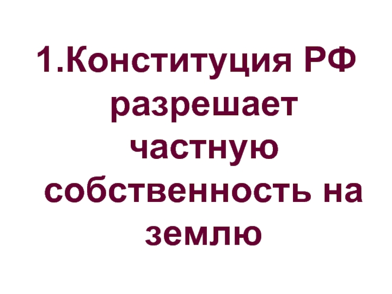Слайд 101.Конституция РФ разрешает частную собственность на землю