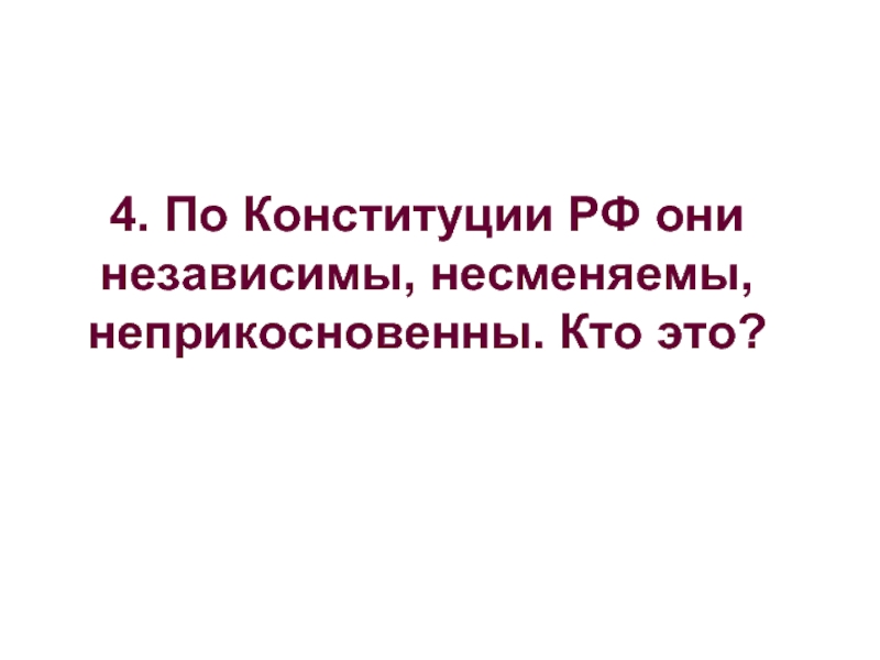 Слайд 834. По Конституции РФ они независимы, несменяемы, неприкосновенны. Кто это?