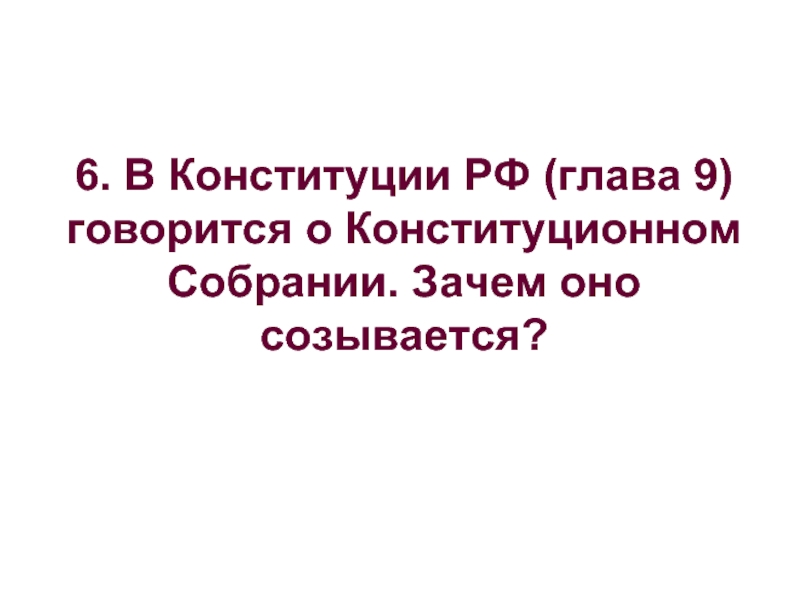 Слайд 856. В Конституции РФ (глава 9) говорится о Конституционном Собрании. Зачем