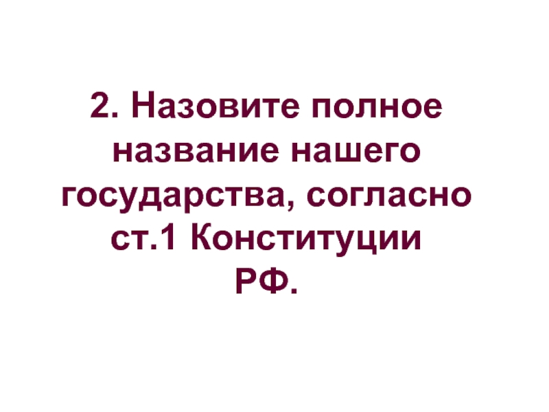 Слайд 412. Назовите полное название нашего государства, согласно ст.1 Конституции