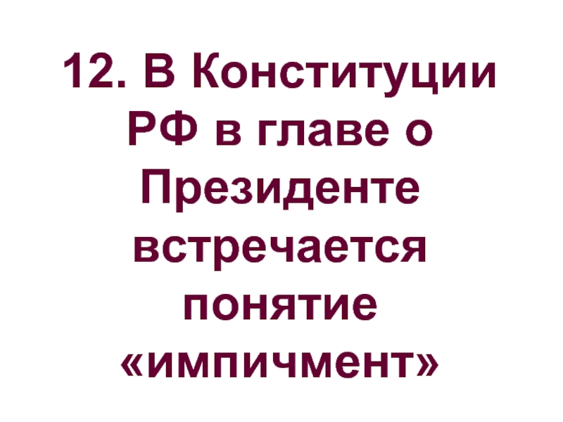 Слайд 2112. В Конституции РФ в главе о Президенте встречается понятие «импичмент»