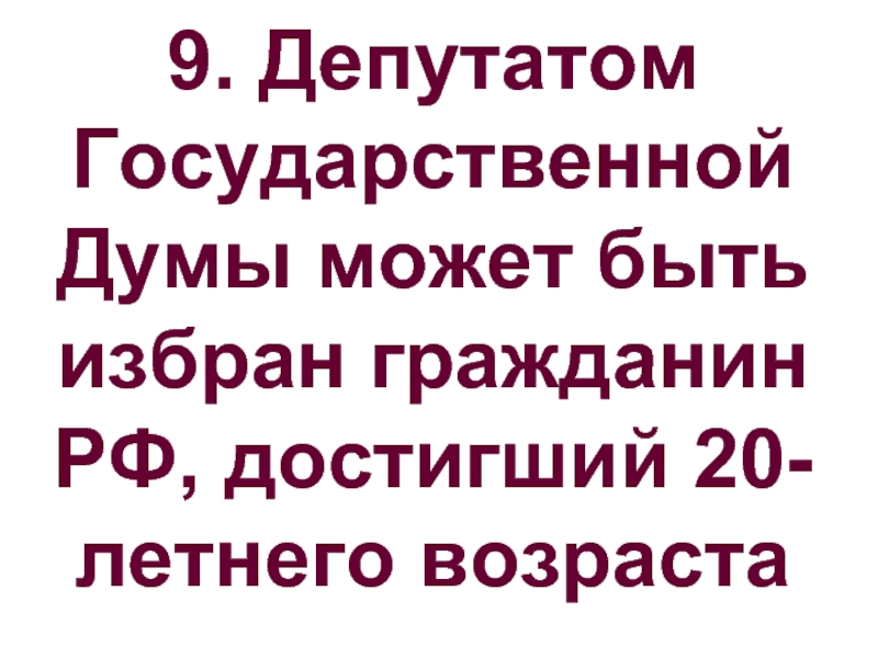 Слайд 339. Депутатом ГосударственнойДумы может быть избран гражданин РФ, достигший 20-летнего возраста