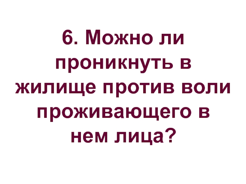 Слайд 456. Можно ли проникнуть в жилище против воли проживающего в нем
