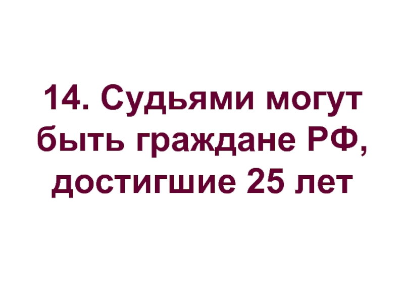 Слайд 3814. Судьями могут быть граждане РФ, достигшие 25 лет