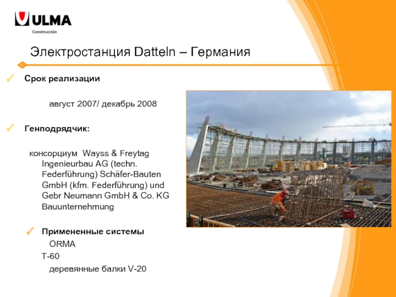 консорциум Wayss & Freytag Ingenieurbau AG (techn. Federführung) Schäfer-Bauten GmbH (kfm. Federführung) und Gebr Neumann GmbH & Co. KG Bauunternehmung