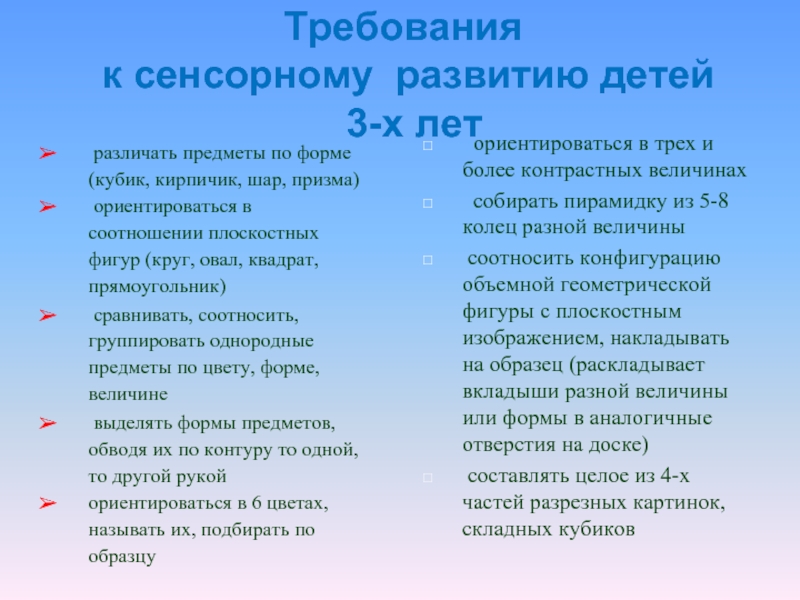 различать предметы по форме (кубик, кирпичик, шар, призма)