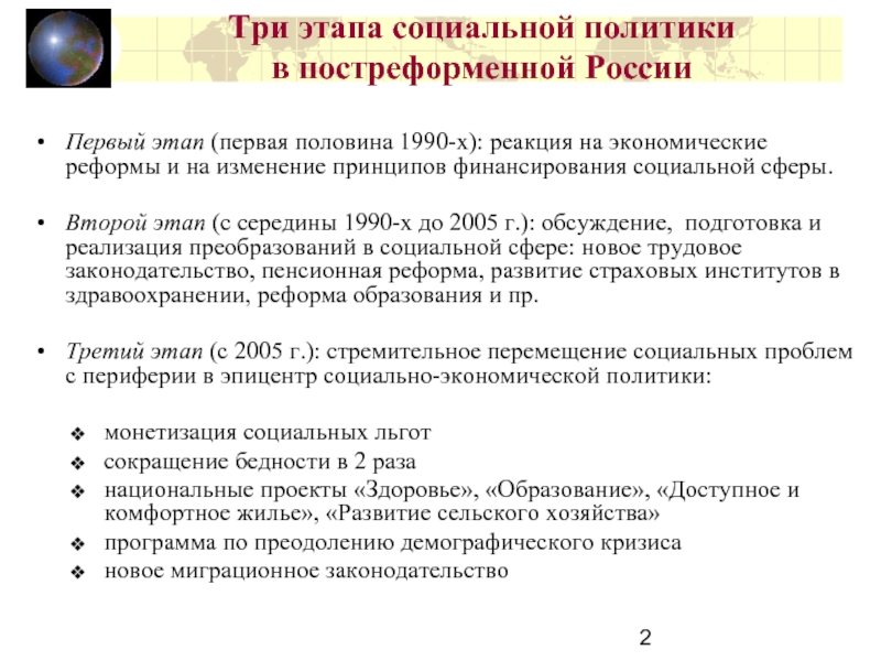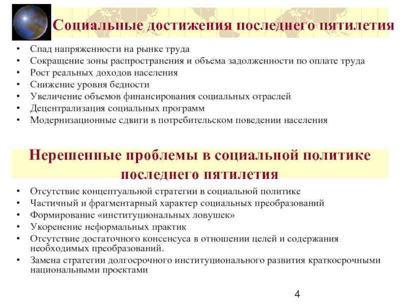 Нерешенные проблемы в социальной политике последнего пятилетия