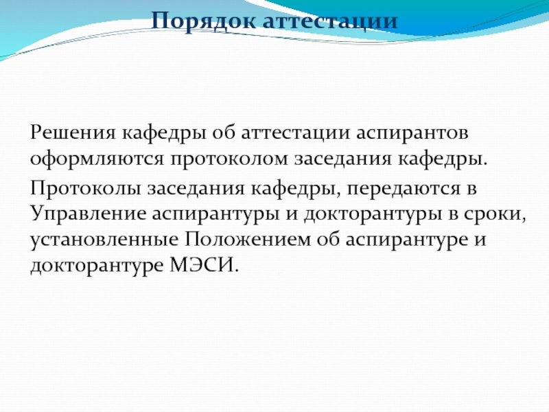 Решения кафедры об аттестации аспирантов оформляются протоколом заседания