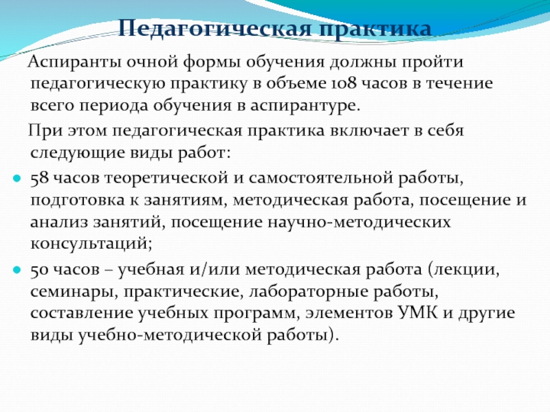 Аспиранты очной формы обучения должны пройти педагогическую практику