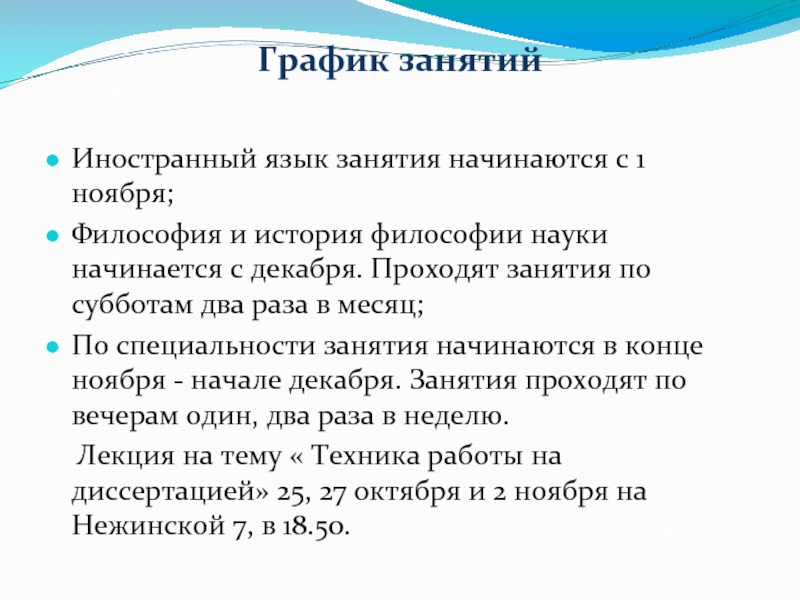 философии науки начинается с декабря. Проходят занятия по субботам два раза в месяц;