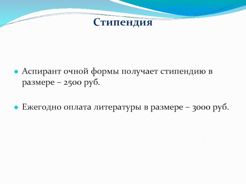 Аспирант очной формы получает стипендию в размере – 2500 руб.