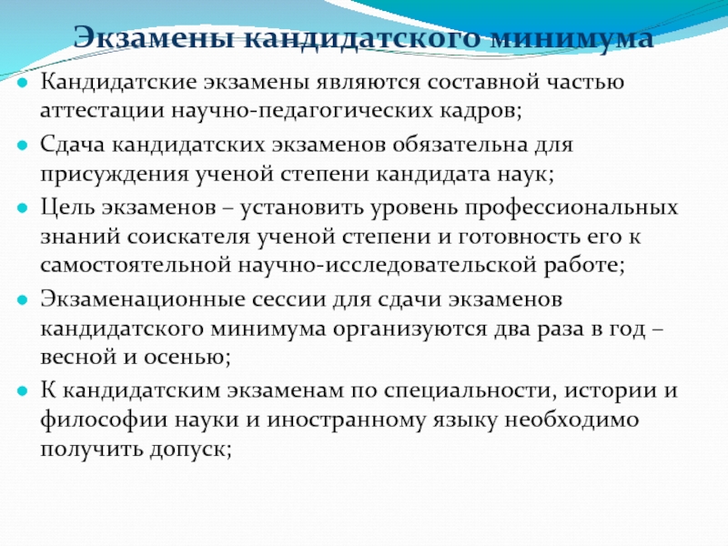 Кандидатские экзамены являются составной частью аттестации научно-педагогических кадров;