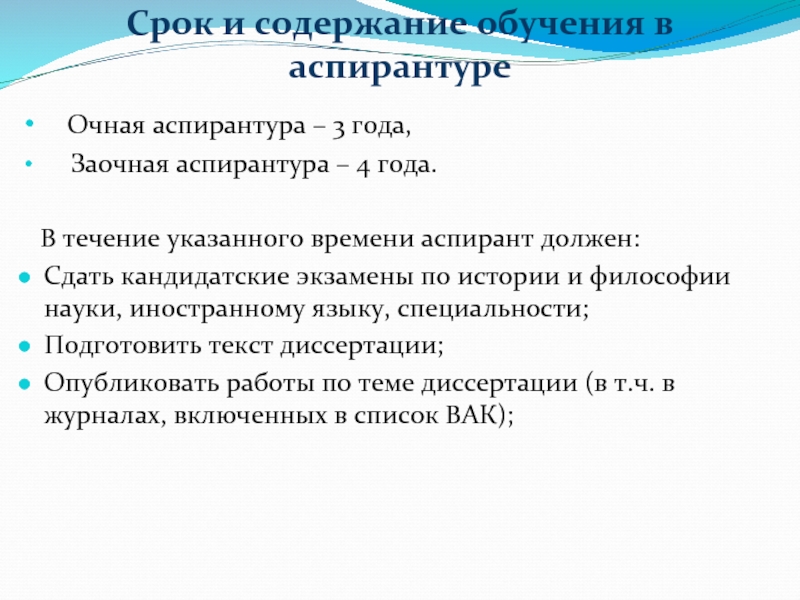 Сдать кандидатские экзамены по истории и философии науки, иностранному языку, специальности;