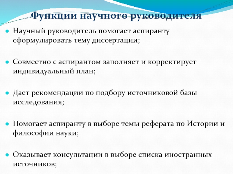 Научный руководитель помогает аспиранту сформулировать тему диссертации;