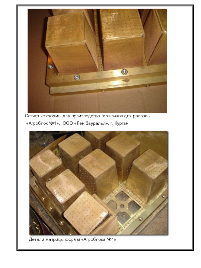 Имеется возможность разработки нового оборудования и форм при расширении производства продукции и ее ассортимента и при создании дочерних предприятий в регионе и по РФ.