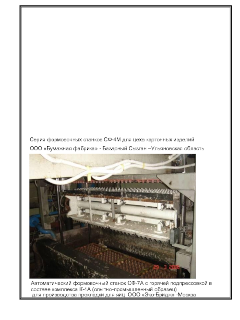Конечным продуктом, на основе Патента, является последняя модификация автоматического формовочно-сушильного станка СФ-4АС-3, который разработан, изготовлен, испытан и подготовлен к серийному производству на предприятии ИП Бугаева В.К.. (Рис.2.)