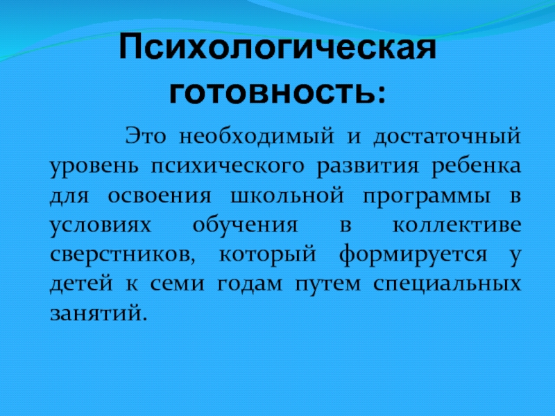 развития ребенка для освоения школьной программы в условиях обучения в коллективе сверстников, который формируется у детей к семи годам путем специальных занятий.