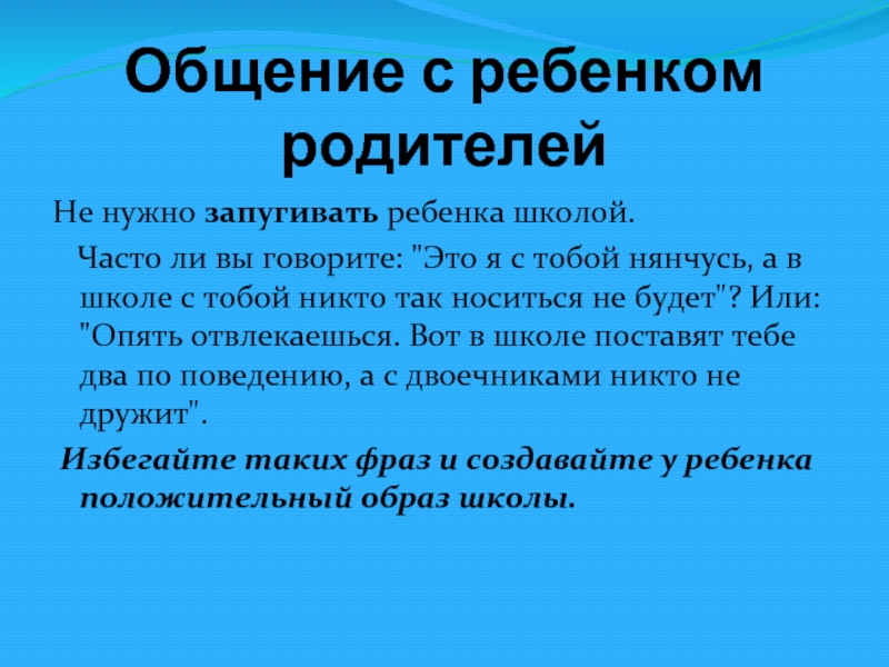 Избегайте таких фраз и создавайте у ребенка положительный образ школы.
