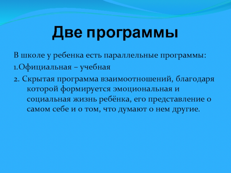 программа взаимоотношений, благодаря которой формируется эмоциональная и социальная жизнь ребёнка, его представление о самом себе и о том, что думают о нем другие.