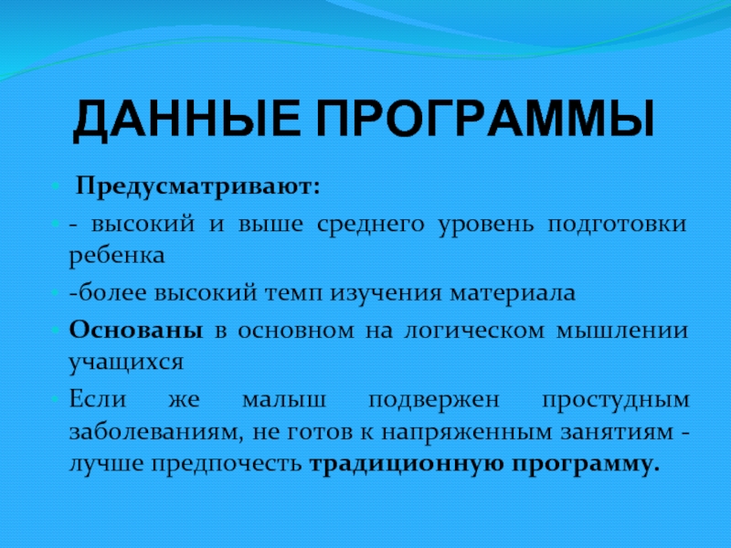 СТОИТ СЕРЬЕЗНО ПОДУМАТЬ И ХОРОШО ЗНАТЬ ОСОБЕННОСТИ СВОЕГО РЕБЕНКА И ПРОГРАММ, ТАК КАК: