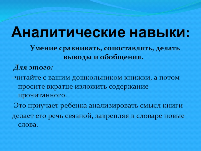 Умение сравнивать, сопоставлять, делать выводы и обобщения.