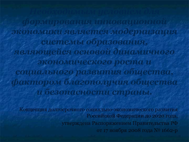 Концепция долгосрочного социально-экономического развития Российской Федерации до 2020 года,