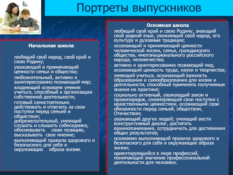 социально активный, уважающий закон и правопорядок, соизмеряющий свои поступки с нравственными ценностями, осознающий свои обязанности перед семьей, обществом, Отечеством;