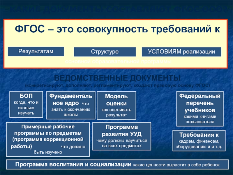 ВЕДОМСТВЕННЫЕ ДОКУМЕНТЫ (конкретизируют, дополняют, регламентируют, создают правовую основу ФГОС)