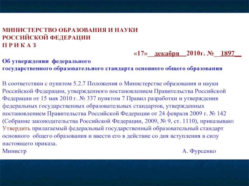 1. разработать нормативно-правовые документы по введению ФГОС ООО;