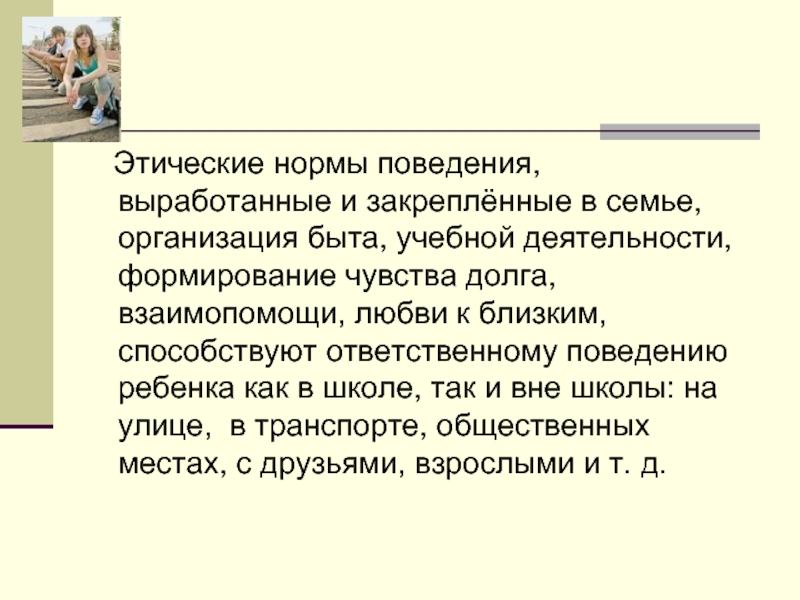 Слайд 3 Этические нормы поведения, выработанные и закреплённые в семье, организация