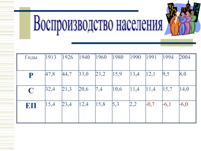 ЕП – естественный прирост (убыль)