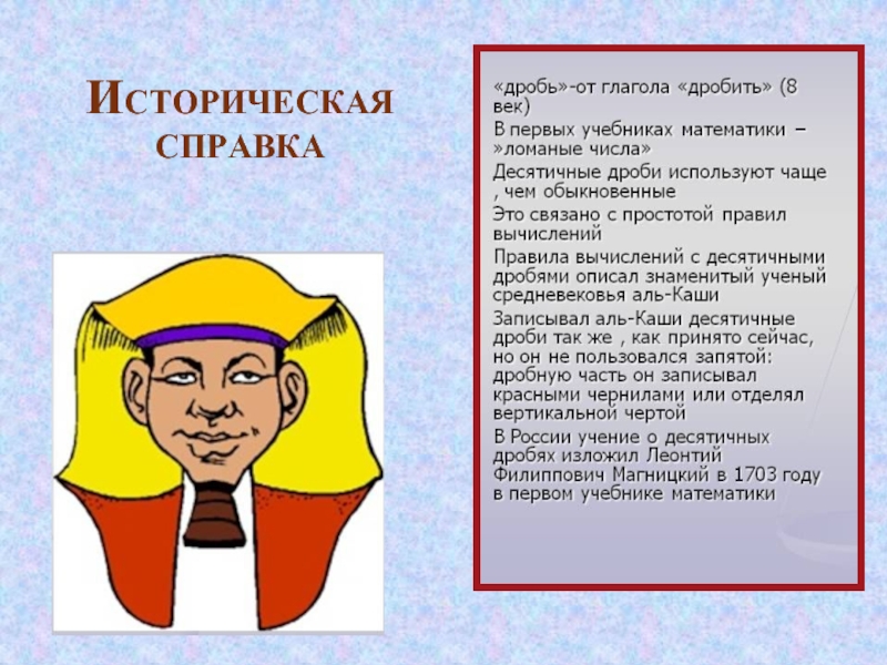 http://900igr.net/kartinki/matematika/Sravnenie-desjatichnykh-drobej/011-Iz-istorii-drobej.html Картинки на тему: десятичная дробь, факты из истории