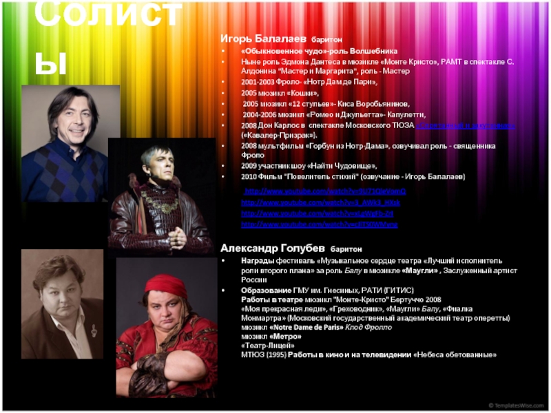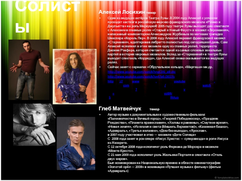 солист мюзикла «Notre Dame de Paris» Роль – Гренгуар).