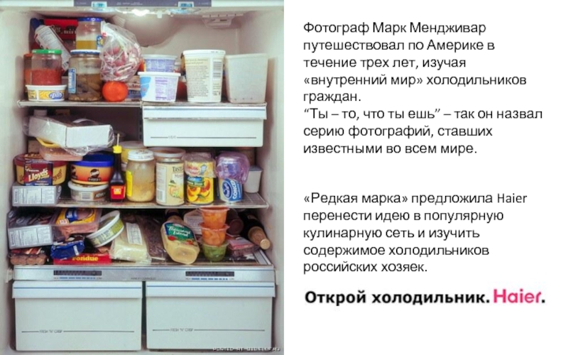 «Редкая марка» предложила Haier перенести идею в популярную кулинарную сеть и изучить содержимое холодильников российских хозяек.