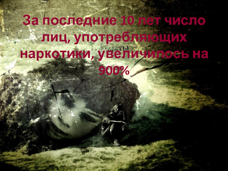 Слайд 16За последние 10 лет число лиц, употребляющих наркотики, увеличилось на 900%