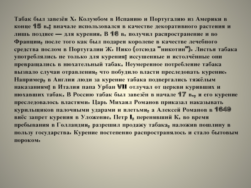 Слайд 7Табак был завезён Х. Колумбом в Испанию и Португалию из Америки
